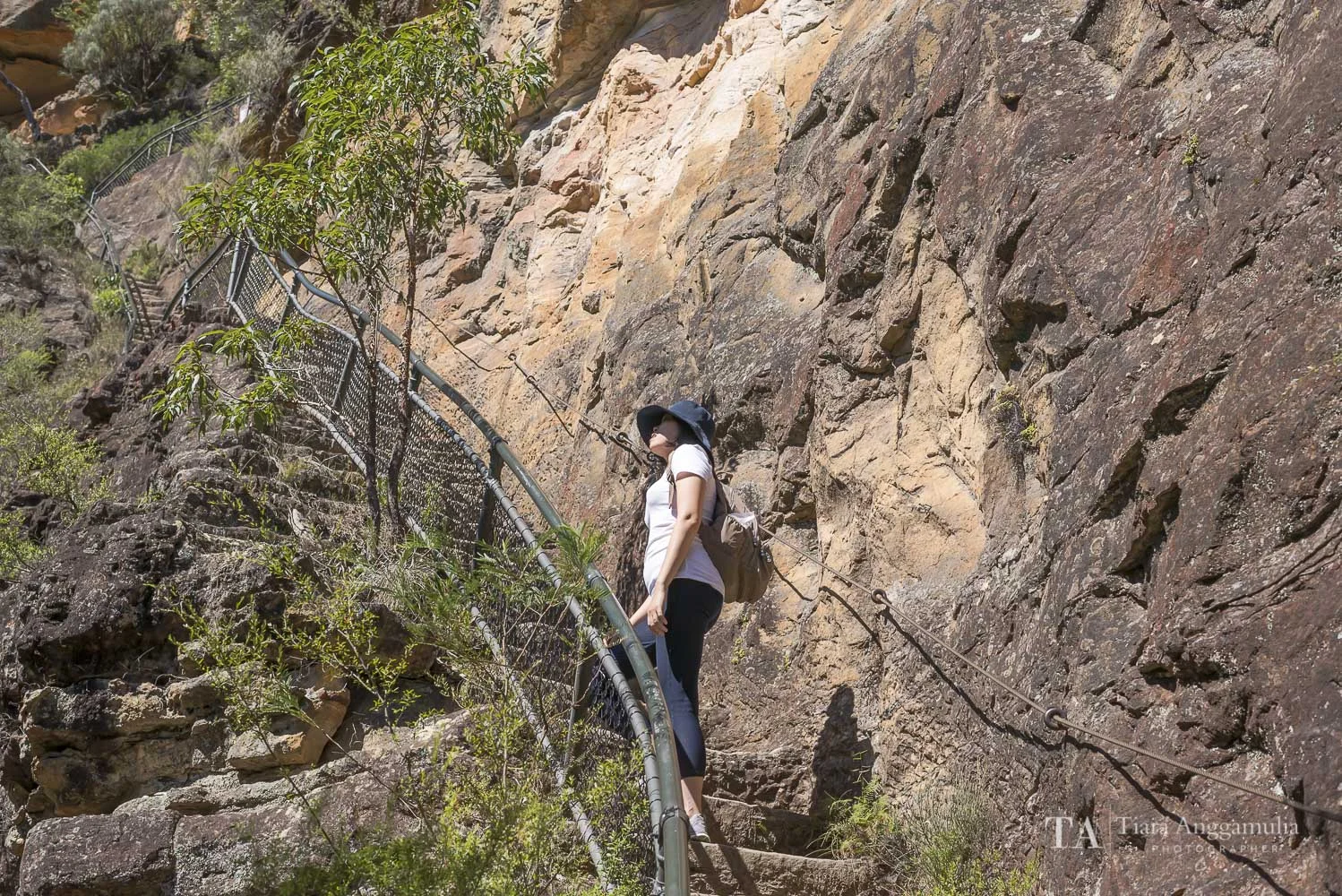 Determined to complete the National Pass trek I continued up the rocky steps. Then there it is, slowly coming into view - the historic Grand Stairway, the hand-carved steps that was built over 100 years ago. One glance at the map on my phone I was assured that this would be the last hurdle I had to go through to get to Wentworth Falls lookout. As I made my way up the steep steps holding on to the steel ropes secured to the cliff face I couldn't help thinking about the workers who laboured under Captain James Murray all those years ago risking their lives to build this physically challenging track.